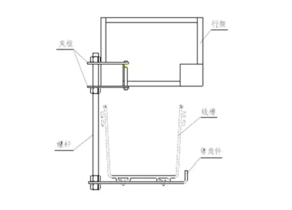 当配线架处于行架的下方时,可以利用行架固定槽道支撑杆,将槽道有效的连接起来。